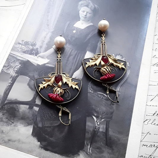 Zahara – Pendientes Boho con Perlas y Cristal Rojo