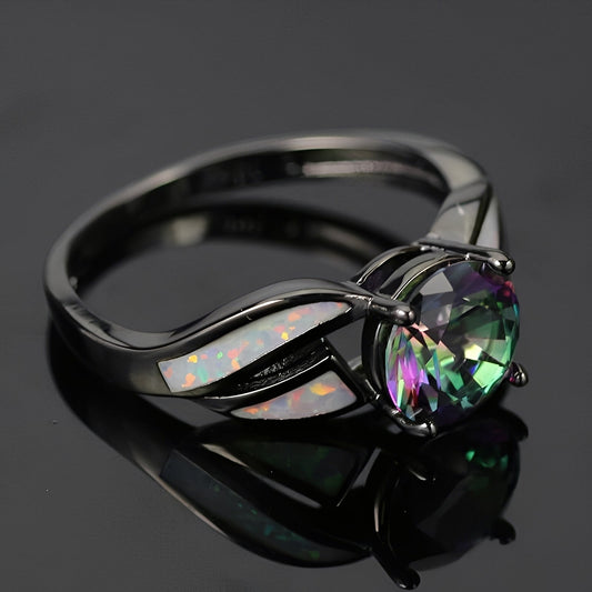 Mirella – Anillo Arcoíris en Ópalo y Topacio