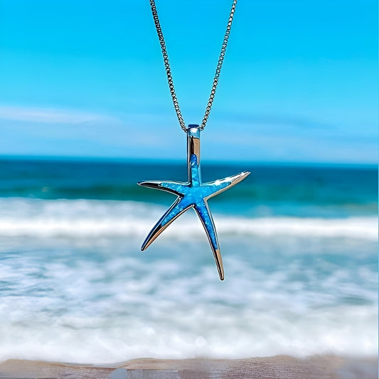 Estella – Collar de Estrella de Mar en Plata con Ópalo Azul
