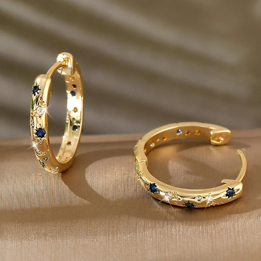 Maelis – Aros Dorados Vintage con Circonia Azul