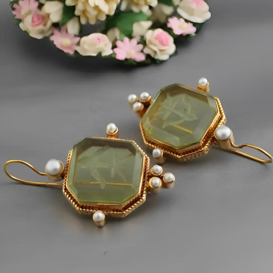 Selene – Pendientes Vintage con Verde Esmeralda y Perlas