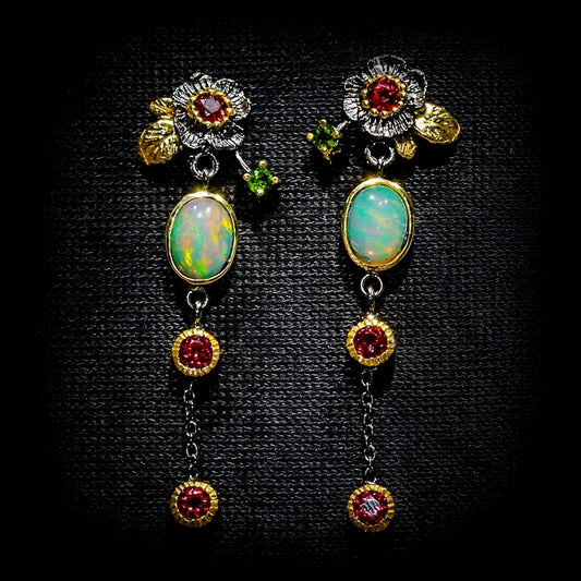 Yara – Pendientes Boho con Ópalo y Circonita Roja