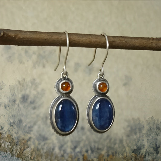 Estelle – Pendientes Vintage en Oro y Plata con Cristal Azul