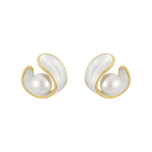Maku – Pendientes de Ópalo Blanco y Perlas Doradas