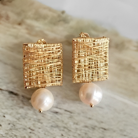 Bella – Pendientes Vintage con Hilos Dorados y Perlas