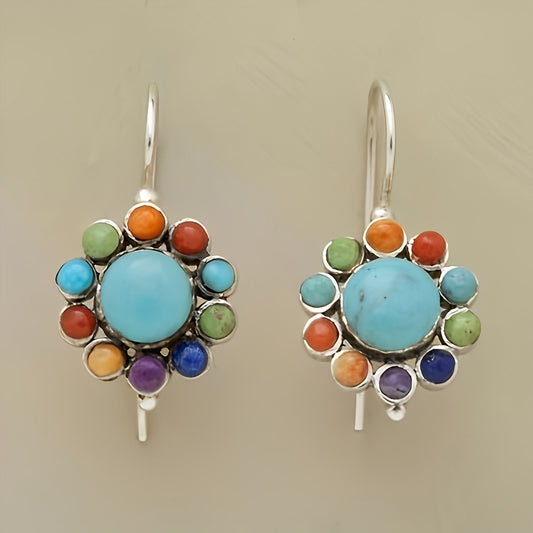 Yara – Pendientes Redondos con Turquesas Multicolor