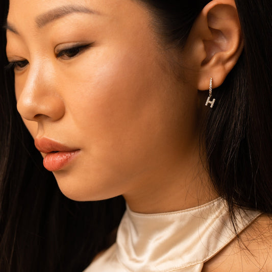 Pendientes con letras de diamantes - Pendientes huggie delicados