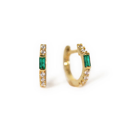 Pendientes Huggie con Baguette de Piedra Preciosa (Esmeralda)