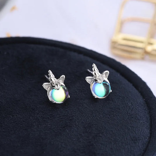 Pegah - Pendientes de Unicornio de Plata con Piedra