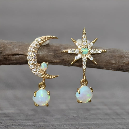 Astra – Pendientes Dorados Luna & Estrella en Ópalo