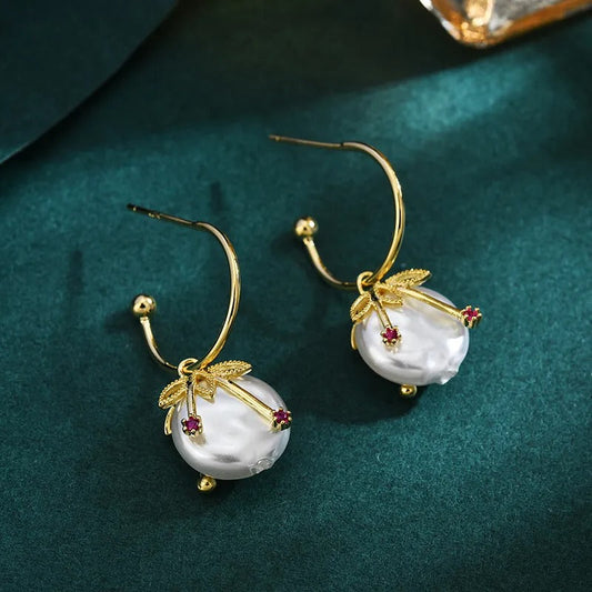 Cléa – Pendientes Vintage Cereza en Oro y Perla