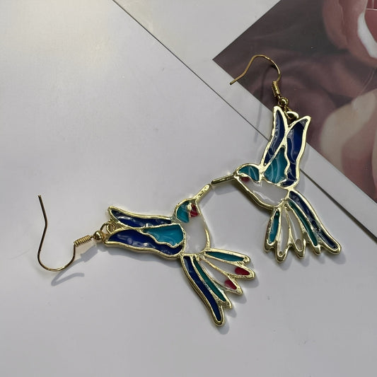Amandine – Pendientes Vintage Colibrí Esmalte Azul