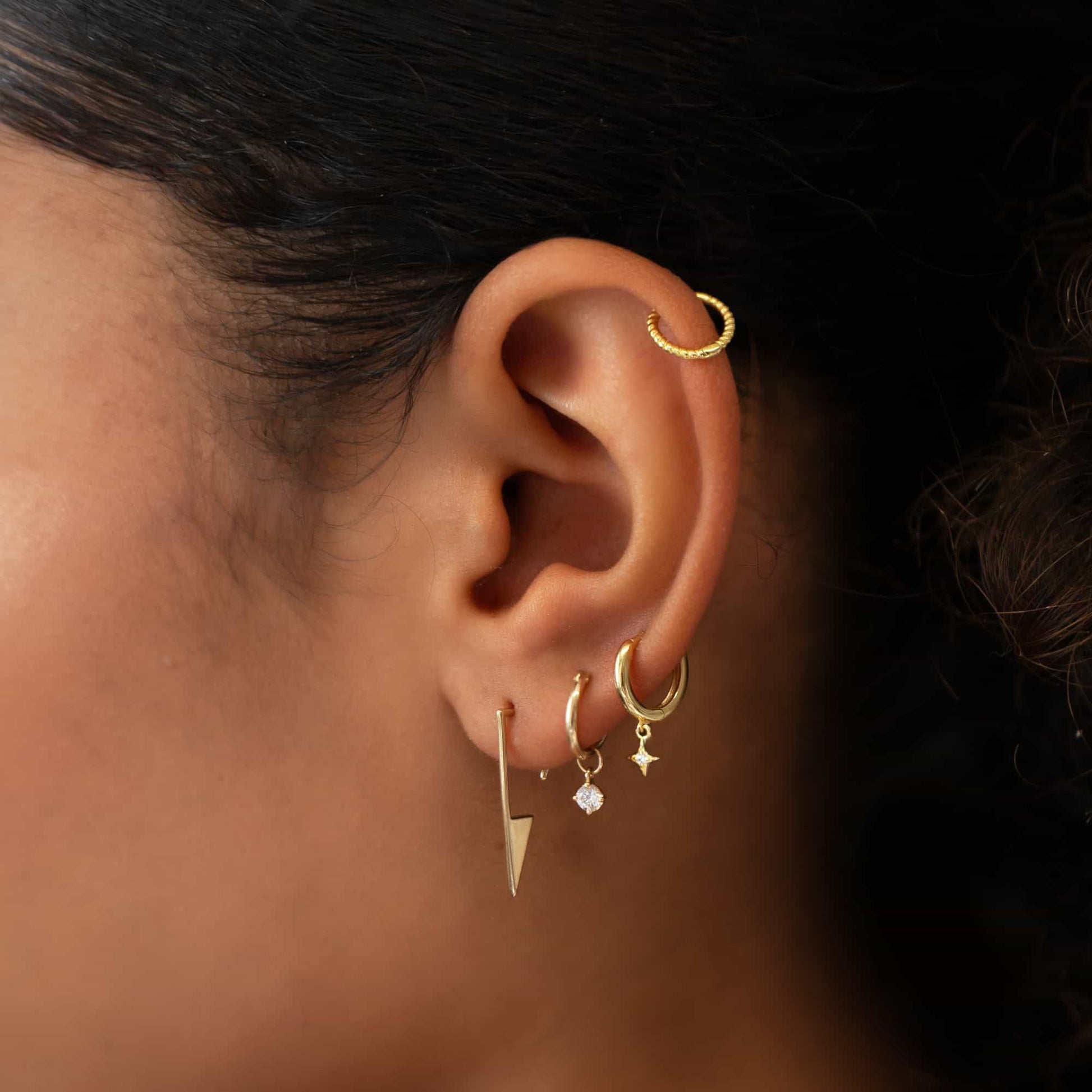 Estos aros Huggie clásicos son un accesorio atemporal que complementa perfectamente cualquier guardarropa. Su diseño elegante y su acabado de alta calidad los convierten en un compañero versátil tanto para el día a día como para ocasiones especiales. Los pequeños pero brillantes detalles aportan una sutil elegancia a cualquier look, convirtiendo estos pendientes en un imprescindible para los amantes de la joyería.