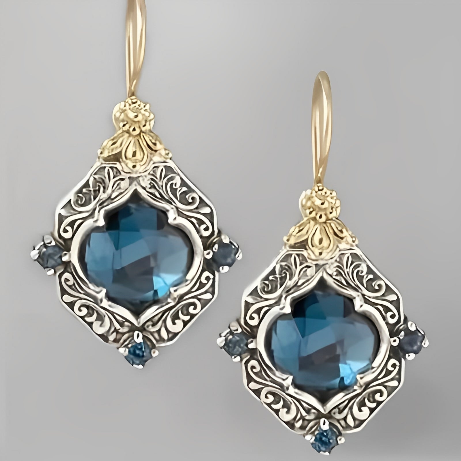 Estelle – Pendientes Vintage en Oro y Plata con Cristal Azul