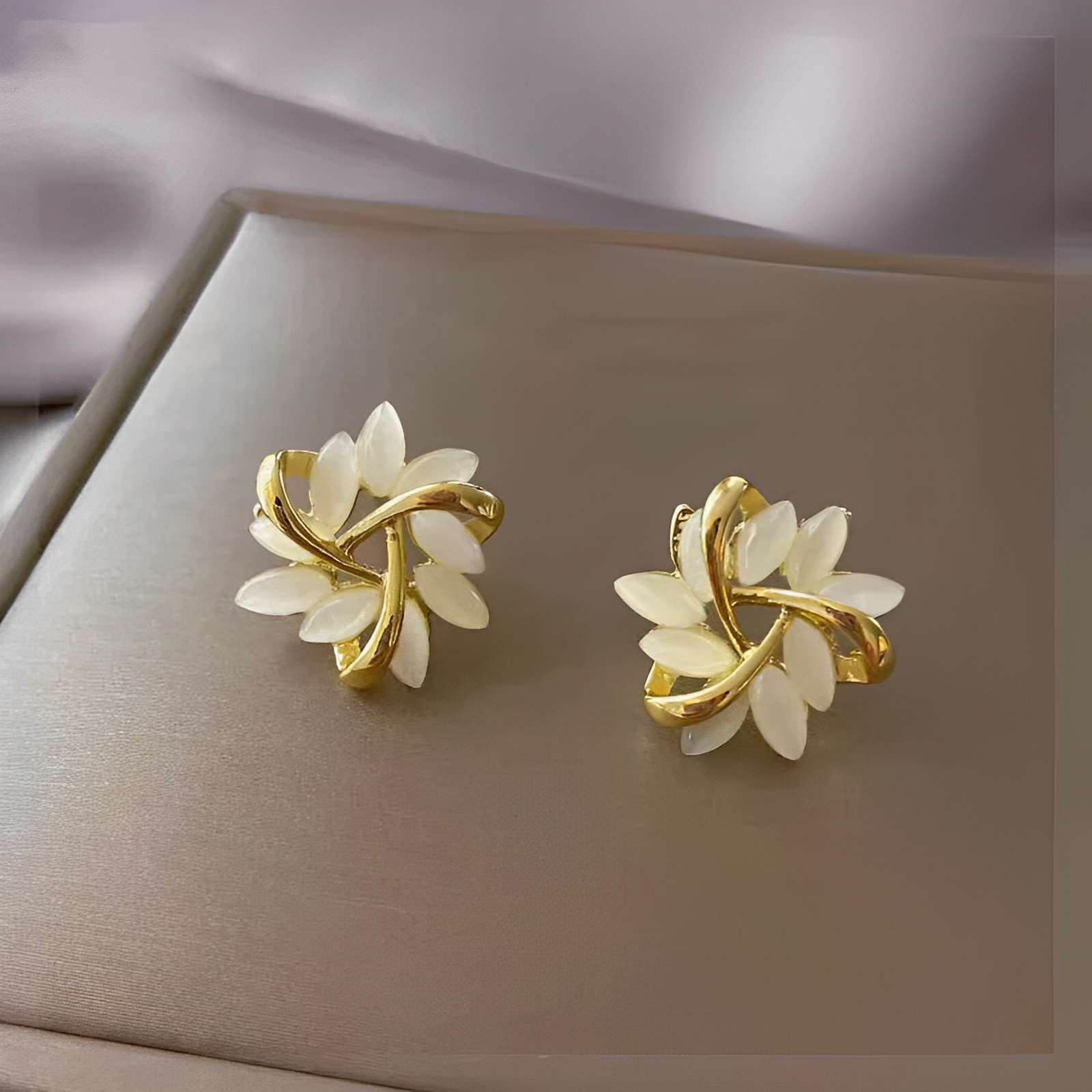 Eve deslumbra con su diseño en forma de pétalos finos que envuelven un ópalo de brillo mágico. Su acabado elegante refleja la luz con sutileza, creando un efecto etéreo en cada movimiento. Fabricados con materiales de alta calidad, son ligeros, resistentes al agua y cómodos para el uso diario. Ideales para quienes buscan un toque delicado con inspiración natural. Edición limitada – añádelos a tu joyero antes de que se agoten.