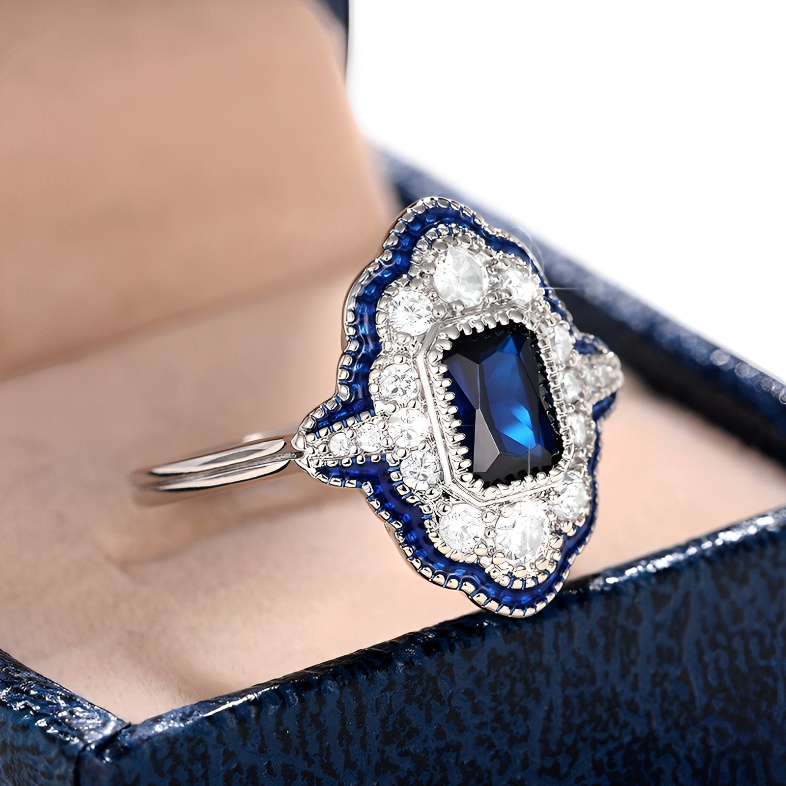 Inaya – Anillo Vintage de Plata con Cristal Azul
