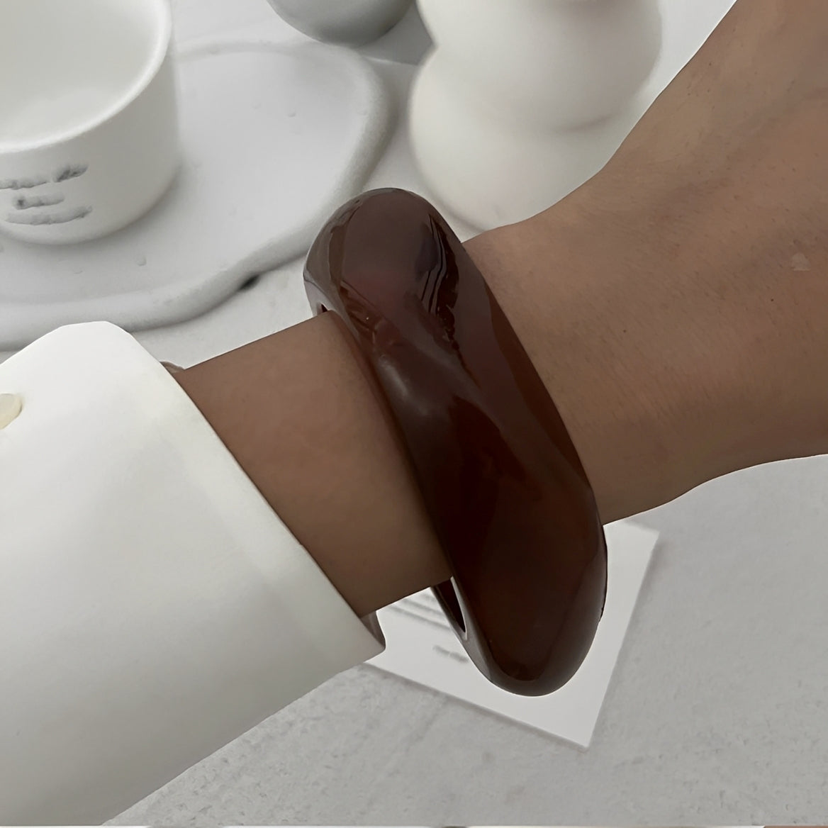 Layra expresa un aire moderno con un pulsera de acrílico translúcido de diseño irregular y escultórico, pensada para atraer sutilmente la mirada. Su forma asimétrica juega con la luz y aporta un toque artístico a tus atuendos. Ligera y agradable de llevar, complementa tanto un estilo minimalista como un look más audaz. Creatividad y elegancia contemporánea se encuentran en esta joya statement, ideal para afirmar tu personalidad.