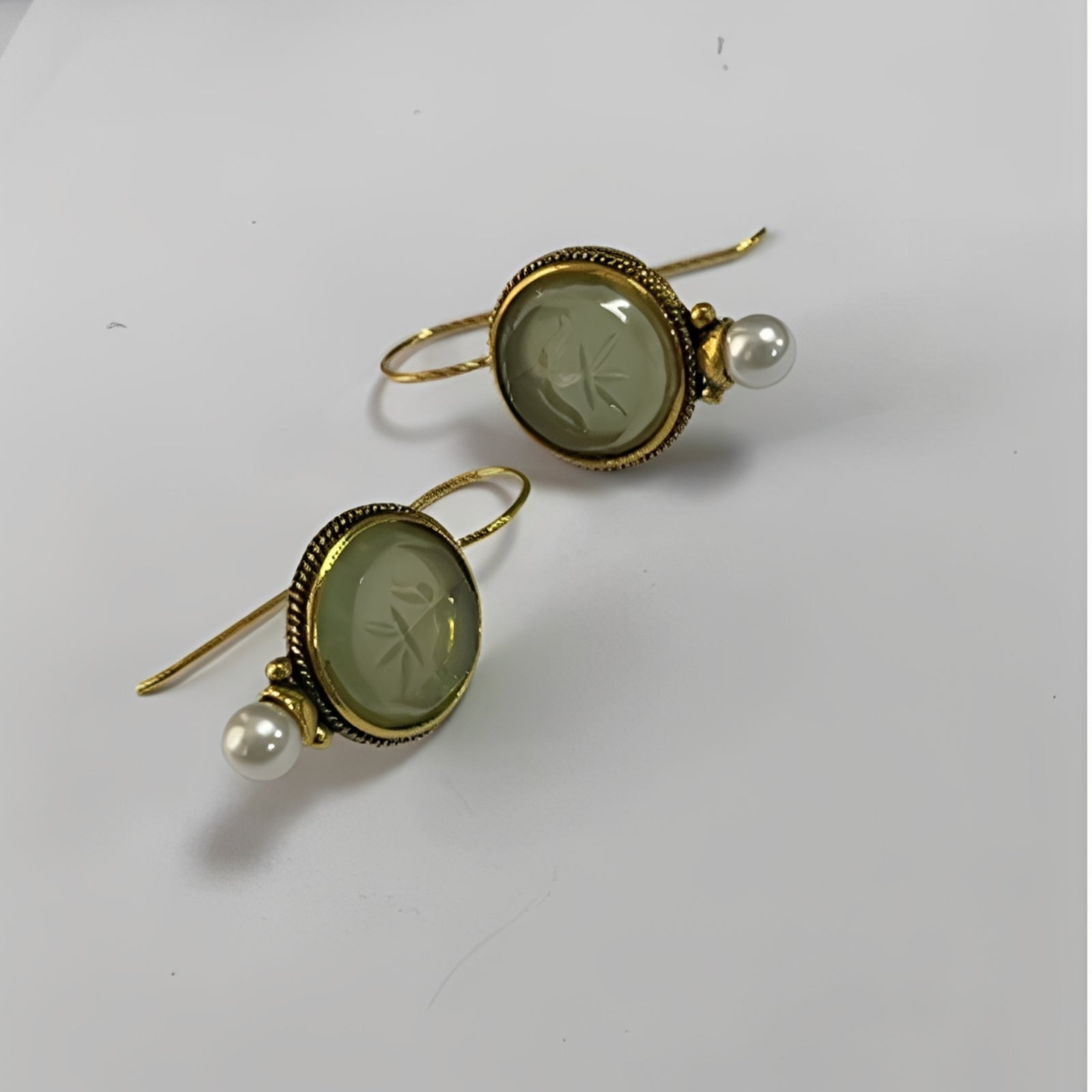Lena – Pendientes Antiguos Piedra Verde y Perla