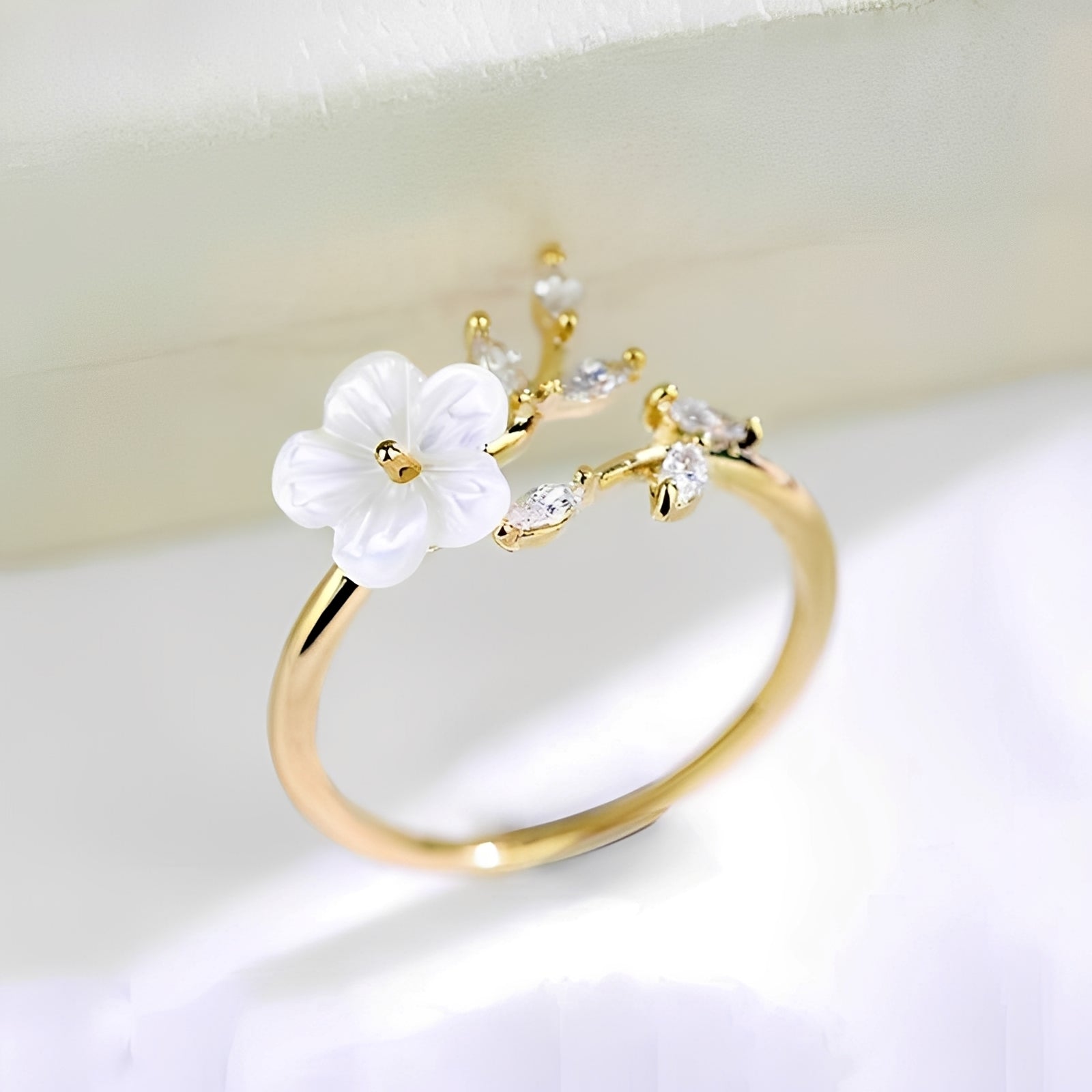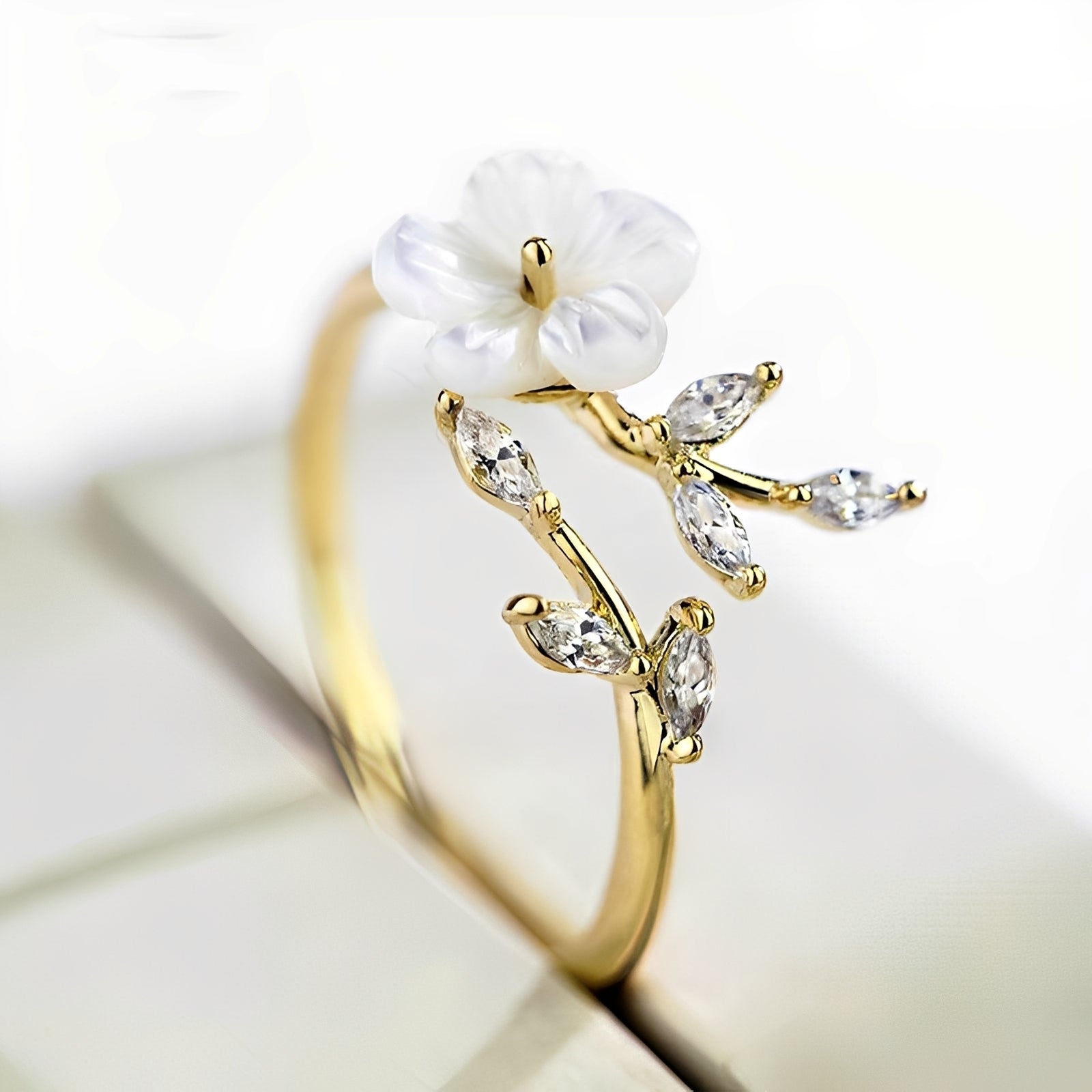 Mayla – Anillo Floral con Flores Blancas y Circonitas