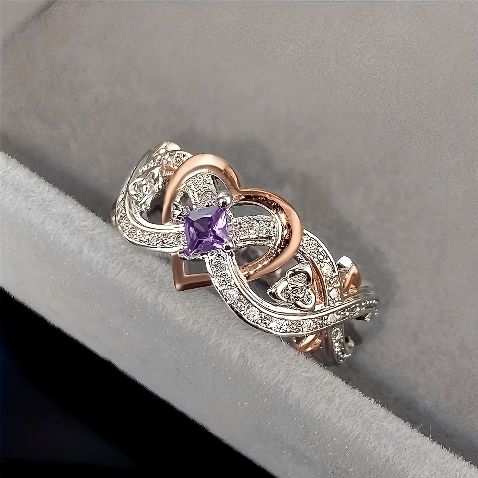 Monica – Anillo Corazón Violeta Brillo Oro & Plata