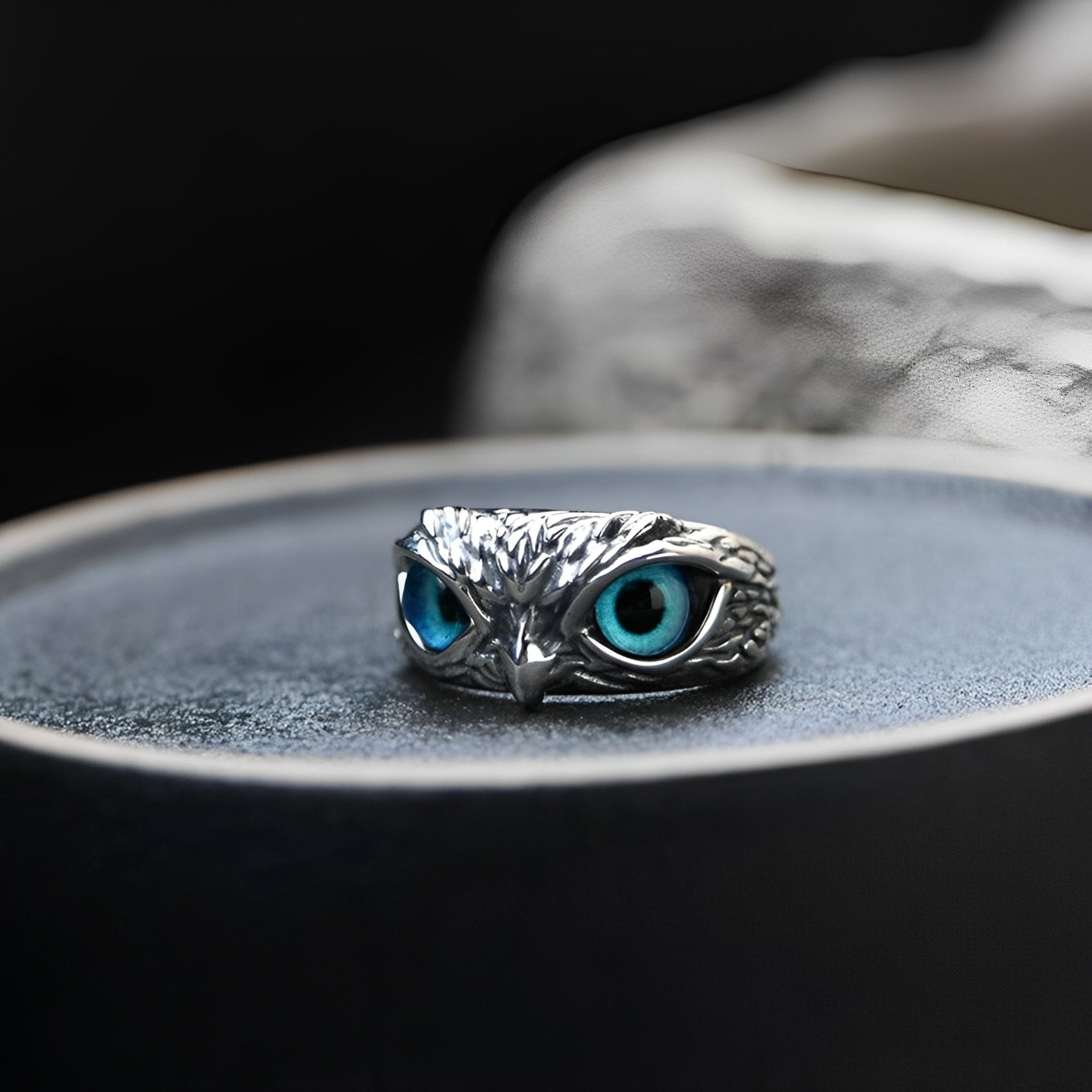 Niva – Anillo Búho Amuleto Ajustable en Plata y Ópalo