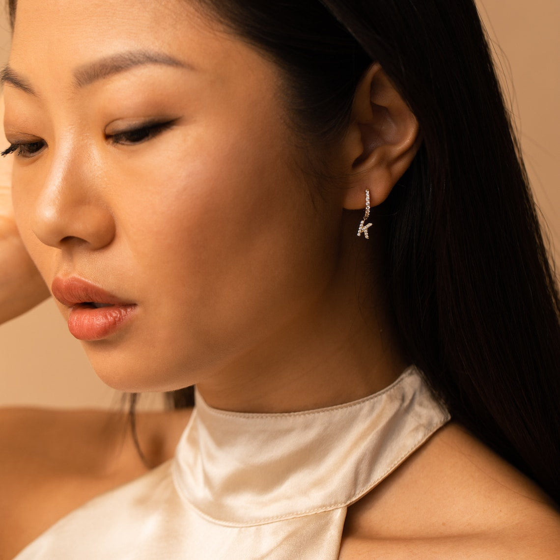 Pendientes con letras de diamantes - Pendientes huggie delicados