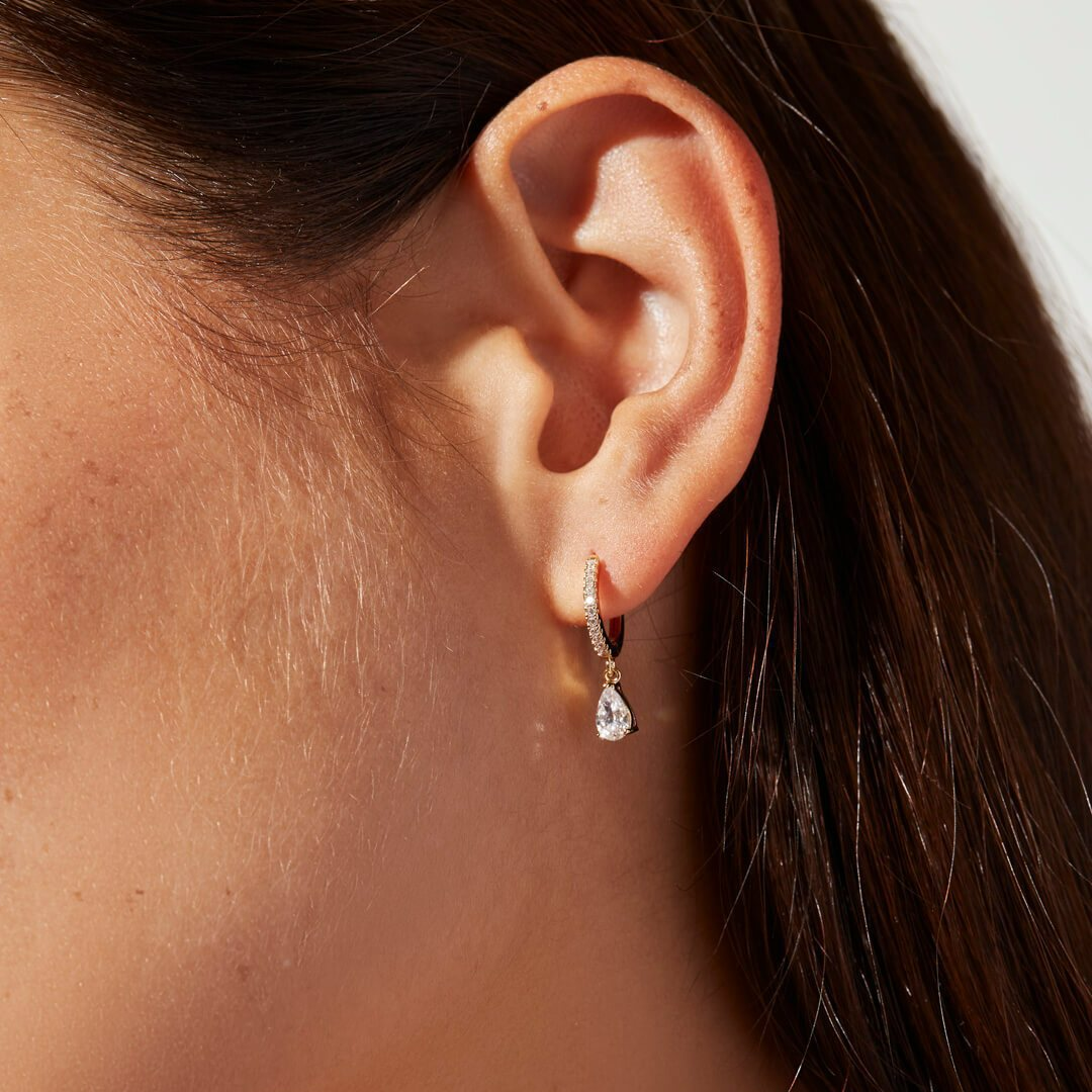 Pendientes de gotas de cristal - Huggies delicados con circonitas