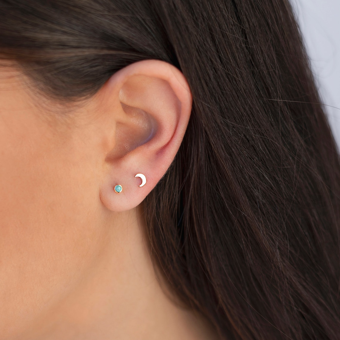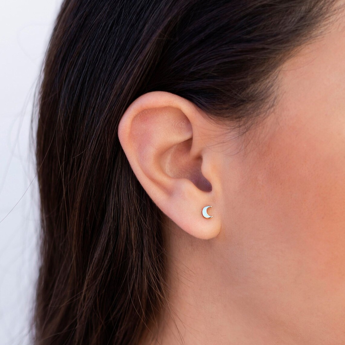Con su diseño diminuto en forma de luna, irradian una elegancia sutil que es perfecta tanto para el día a día como para ocasiones especiales. Estos pendientes prometen realzar tu estilo con su encanto celestial atemporal.