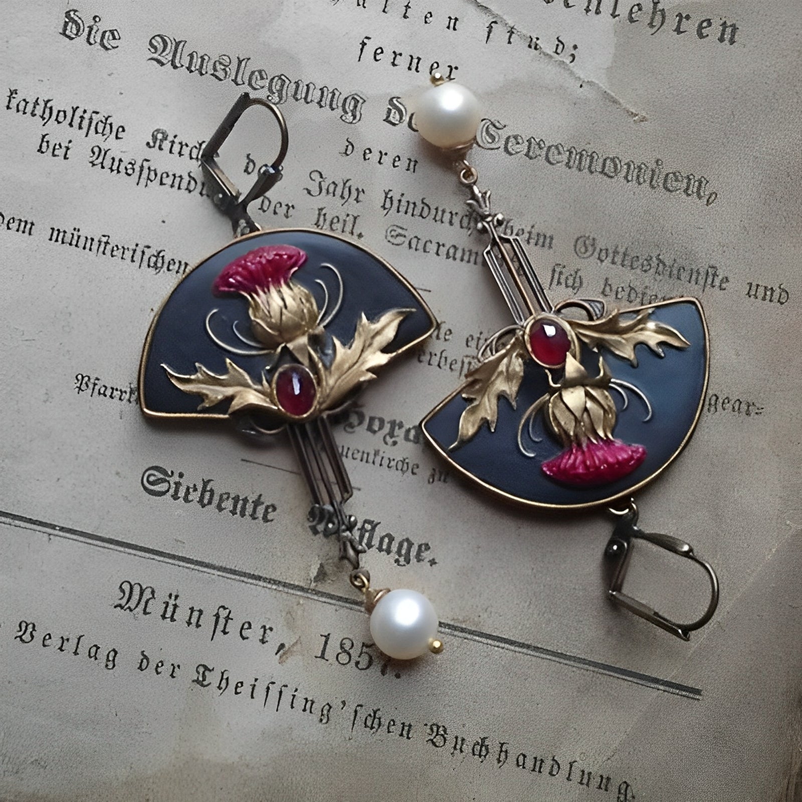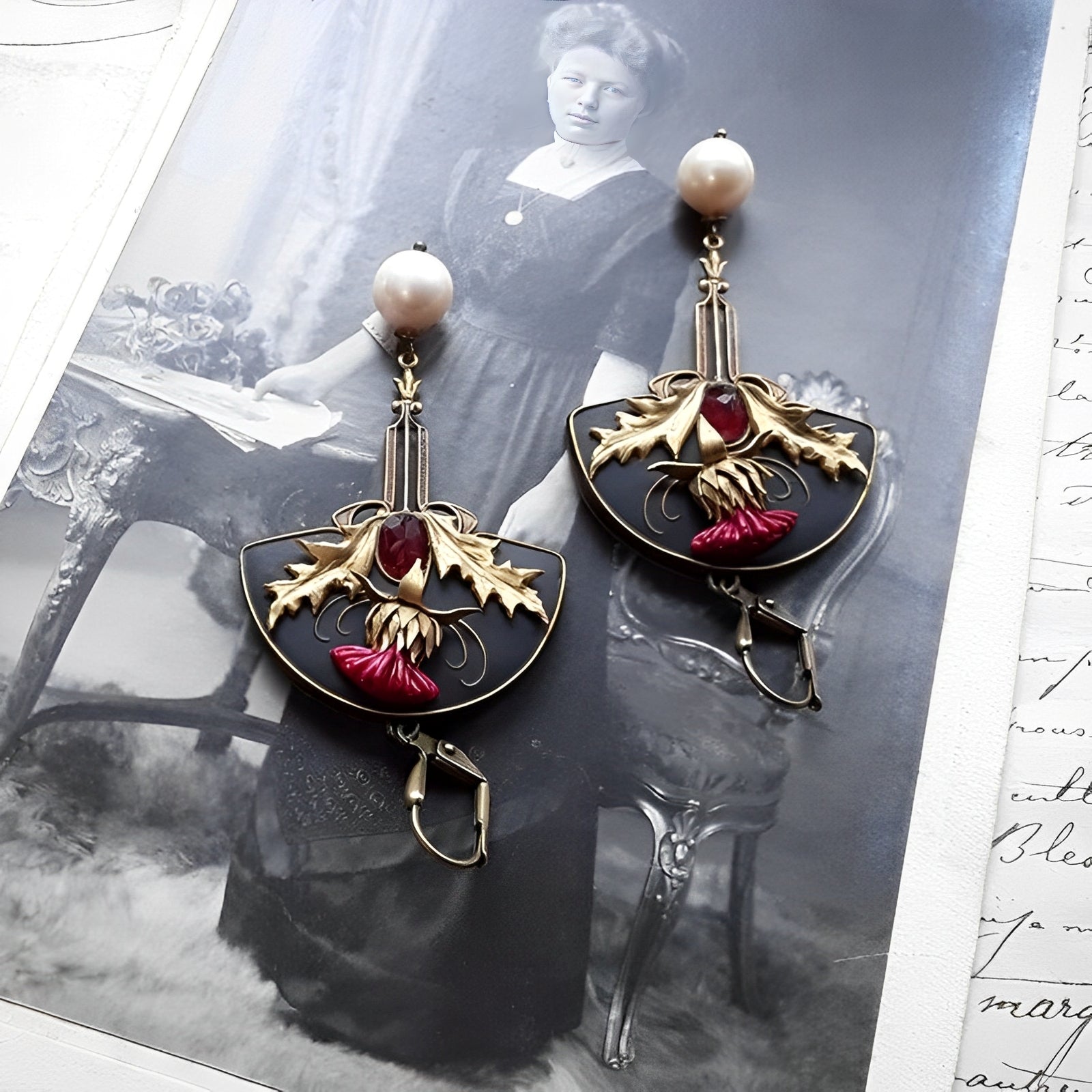 Raisa – Pendientes Boho con Perlas y Cristal Rojo