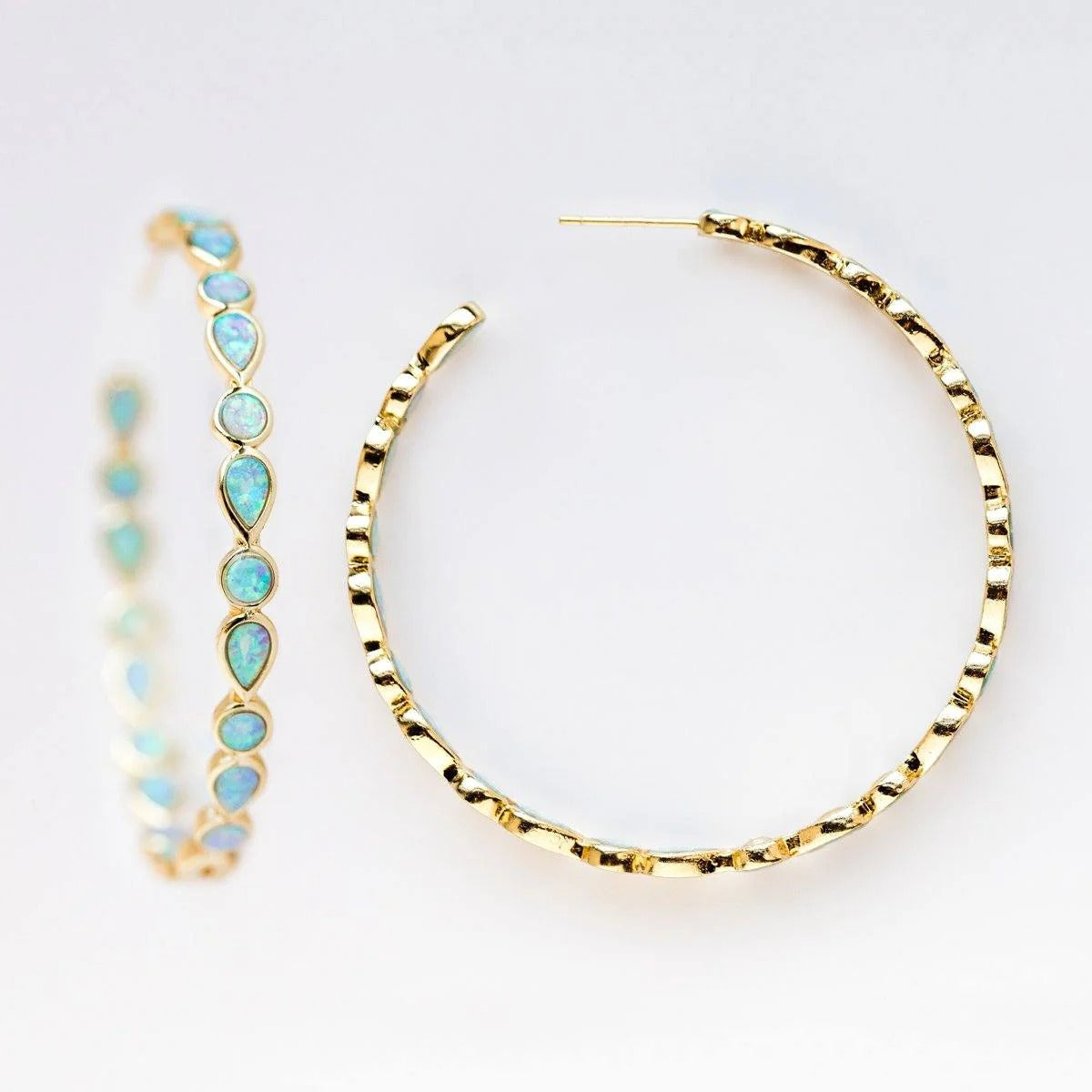 Raya seduce por la alianza perfecta entre elegancia retro y brillo místico. El ópalo azul, con reflejos profundos, capta la luz con delicadeza, mientras que la montura dorada vintage añade un toque de encanto atemporal. Estas criollas realzan cada atuendo con ligereza y carácter. Una joya refinada para quienes aman brillar con discreción.
