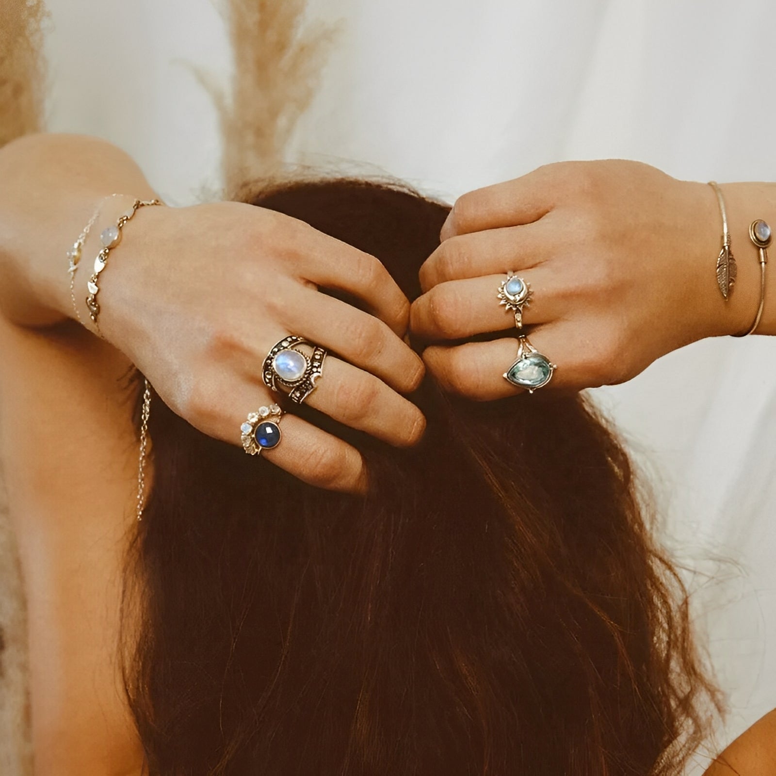 - Cobre y latón: estos metales añaden un toque de calidez y encanto vintage y envejecen con gracia para realzar la belleza de sus joyas.