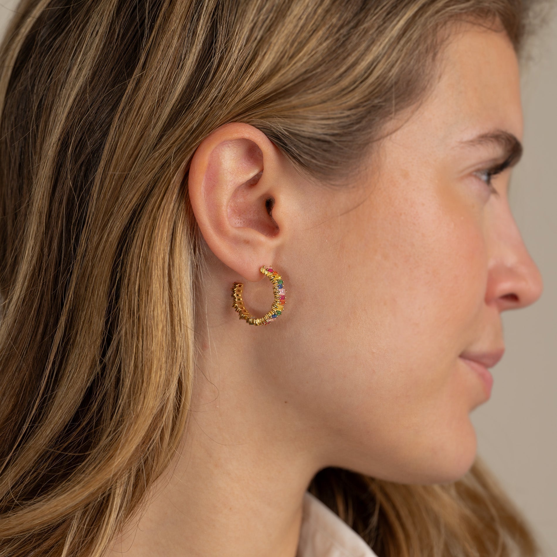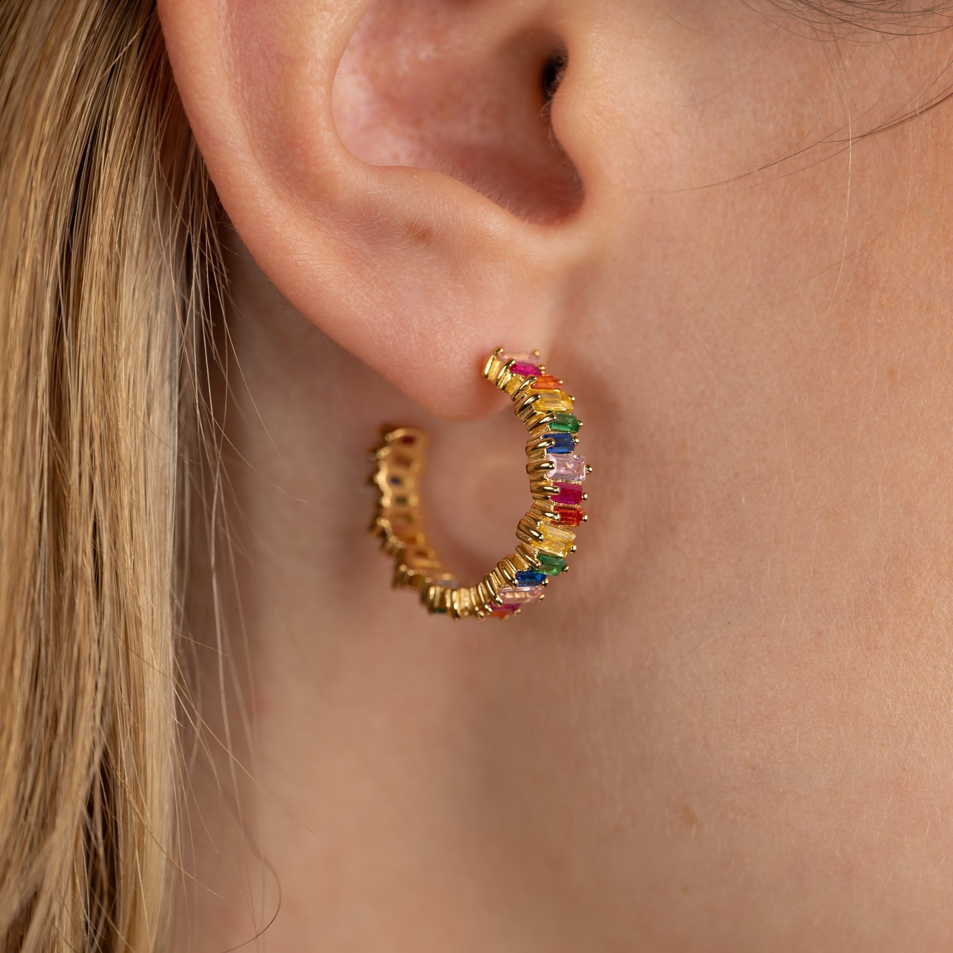 Aporta un toque de color y elegancia a tu look con los Veronica - Aros Dorados Arcoíris.