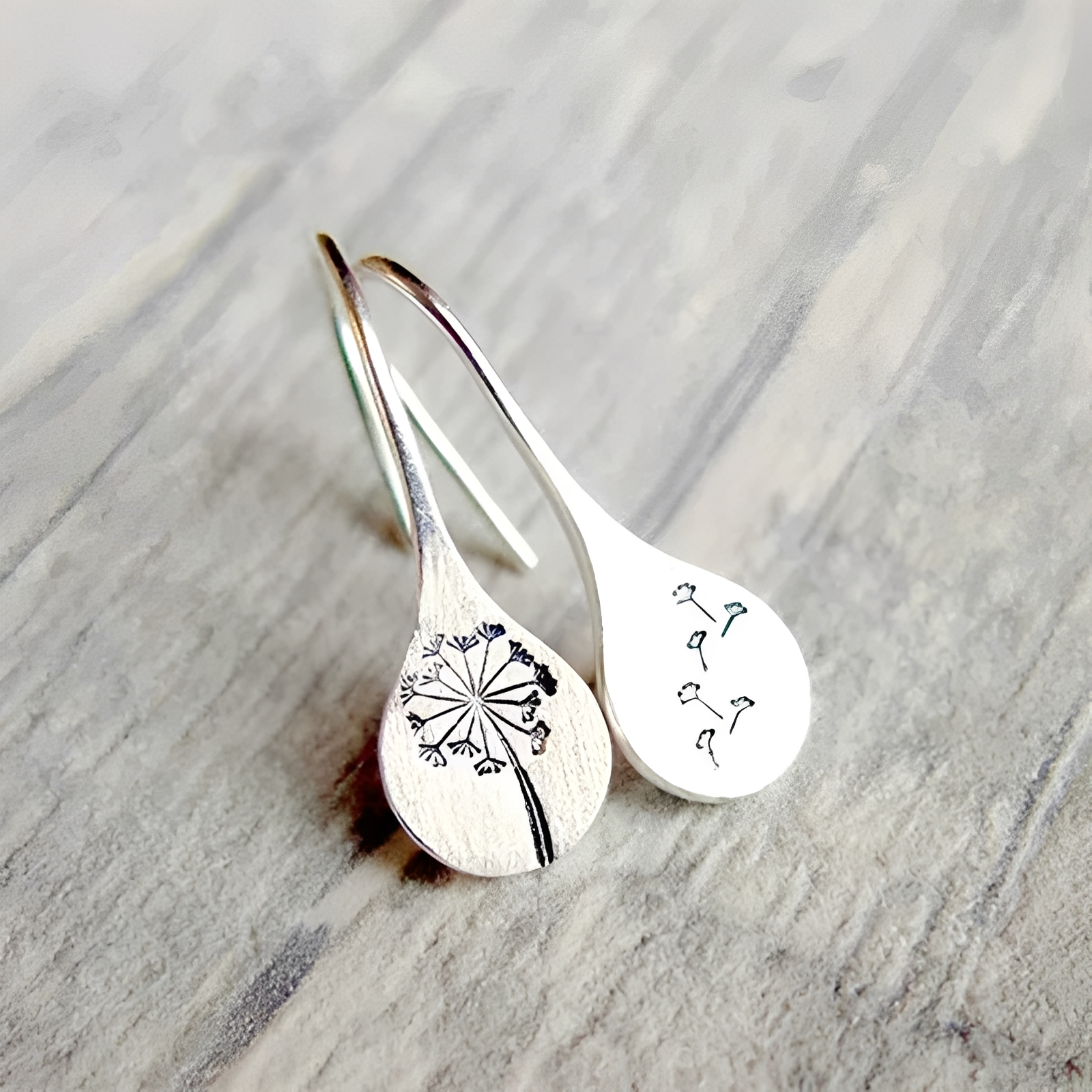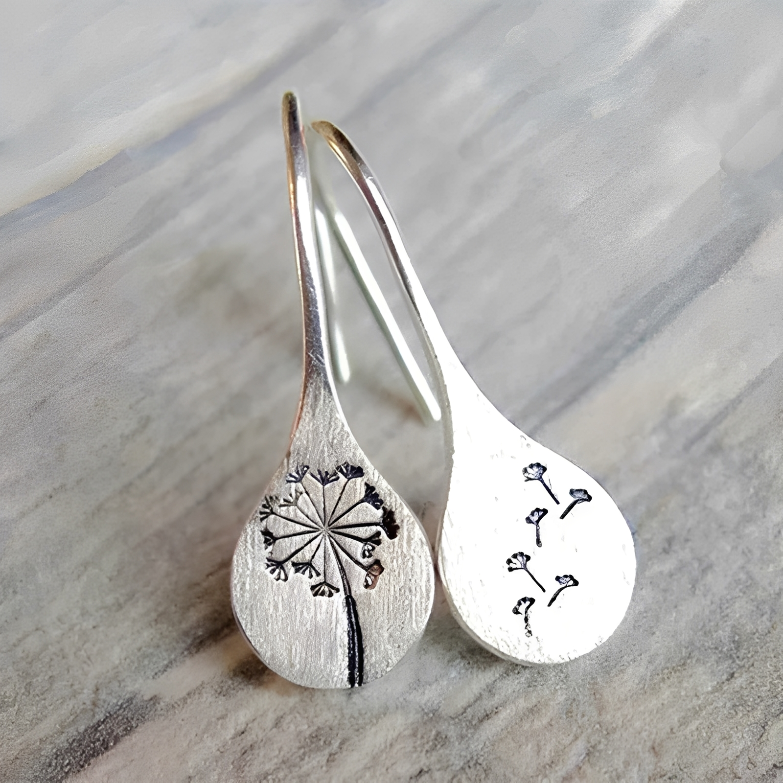 Yara – Pendientes de Hoja de Diente de León en Plata de Ley 925