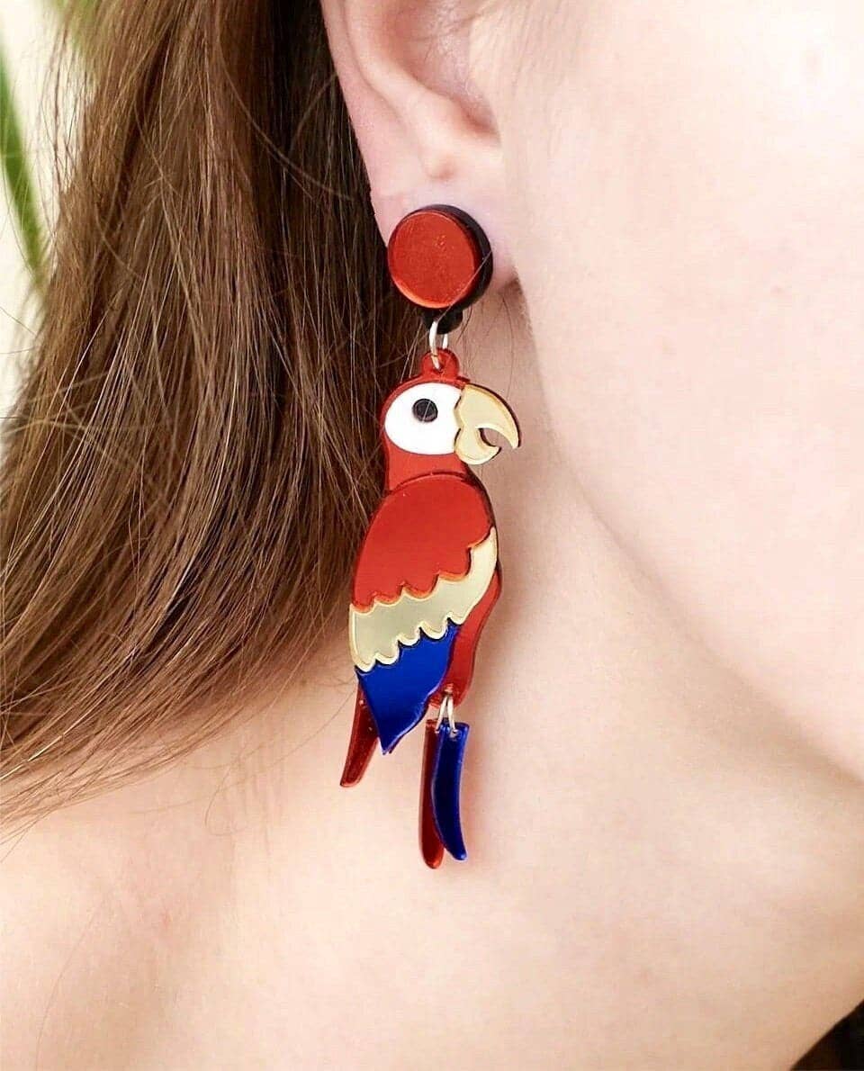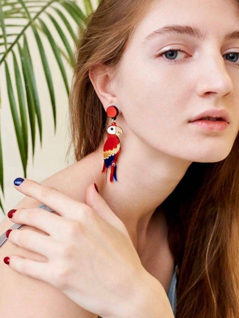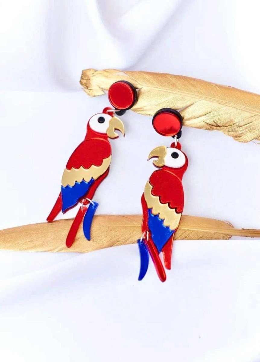 Exotismo vibrante – Yeganeh - Pendientes de Loro en Acrílico Orgánico